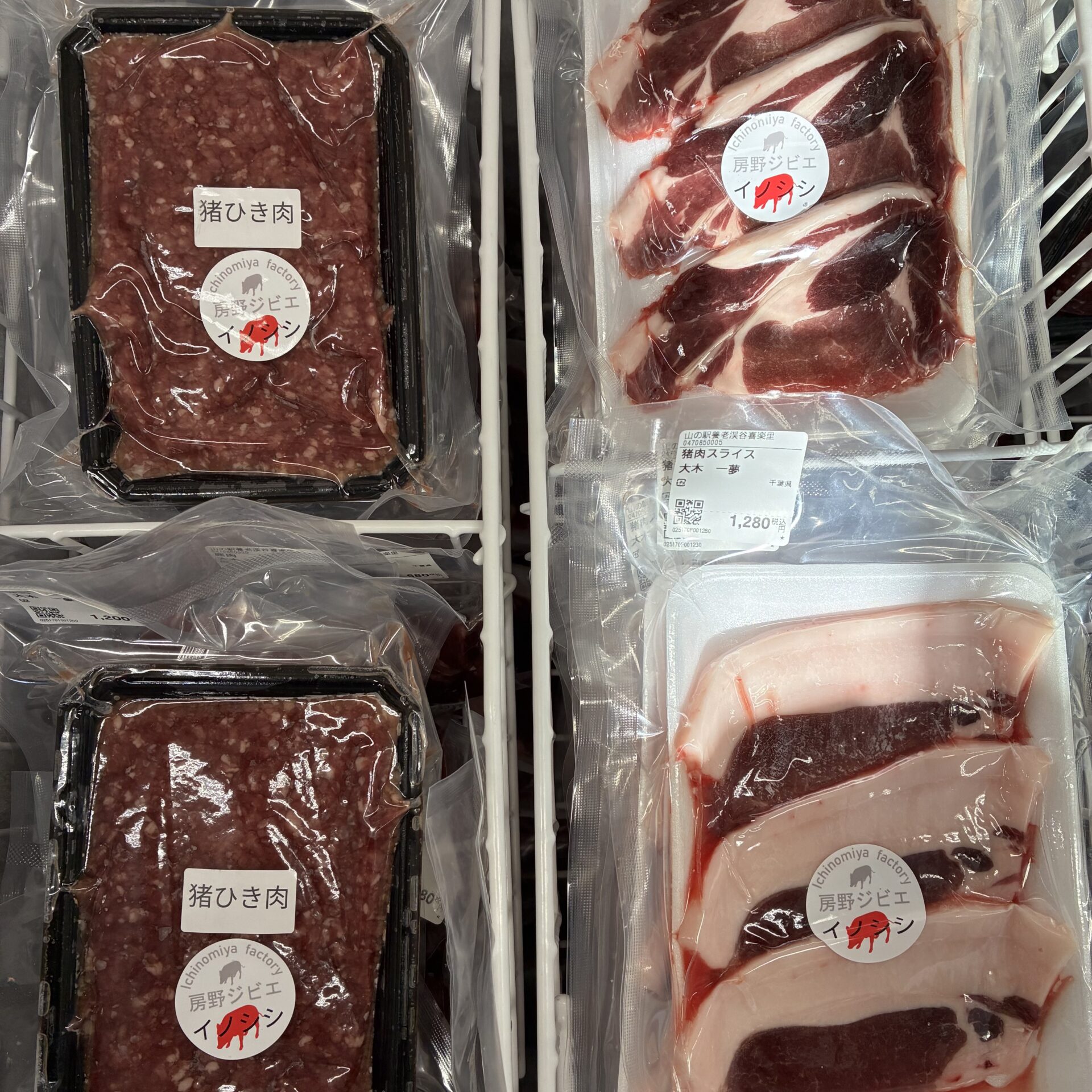 - イノシシのひき肉やスライスも販売しております。