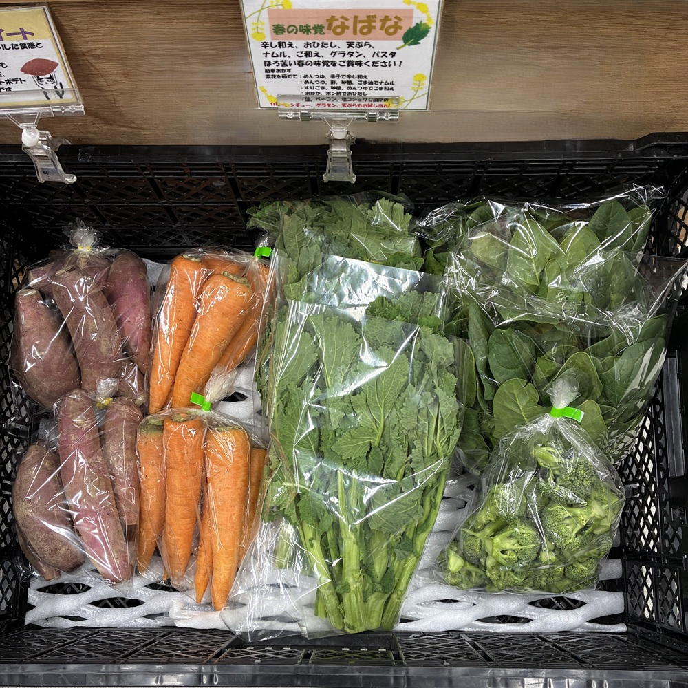 - 地元で採れた季節の新鮮な野菜を販売しています。