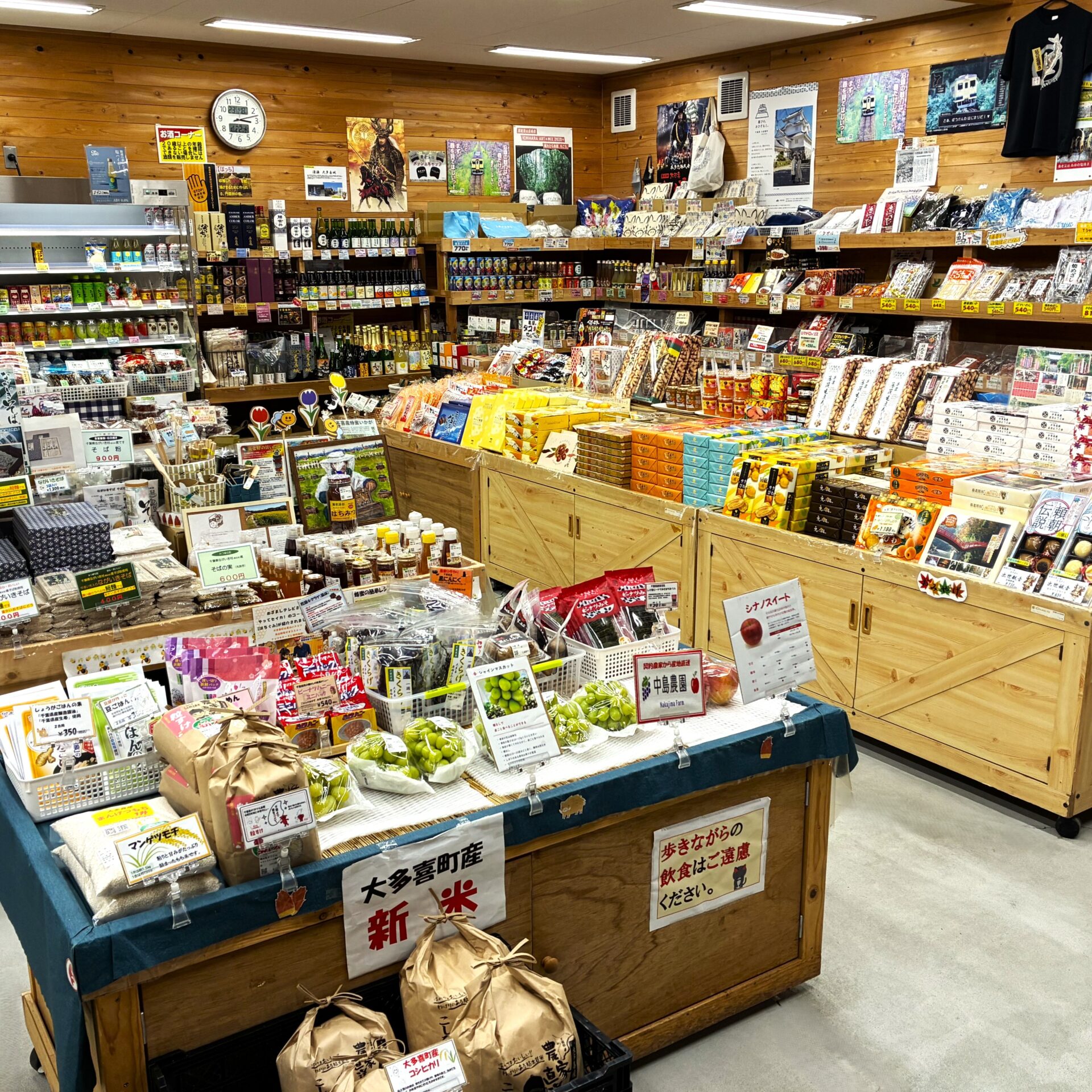 - 養老渓谷、大多喜町、房総エリアのお土産品や、地元で採れた季節の野菜・果物などを取り揃えています。