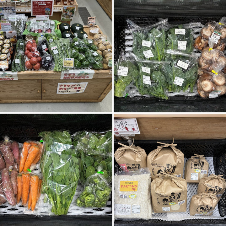 - 地元で採れた季節の新鮮な野菜やお米を販売しています。