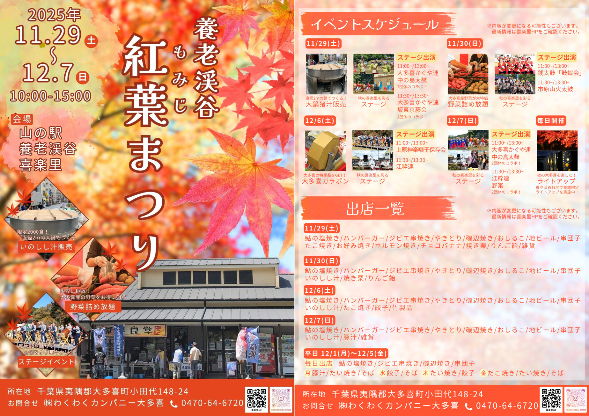 「山の駅 養老渓谷 喜楽里」にて、【養老渓谷 紅葉まつり】を開催いたします。